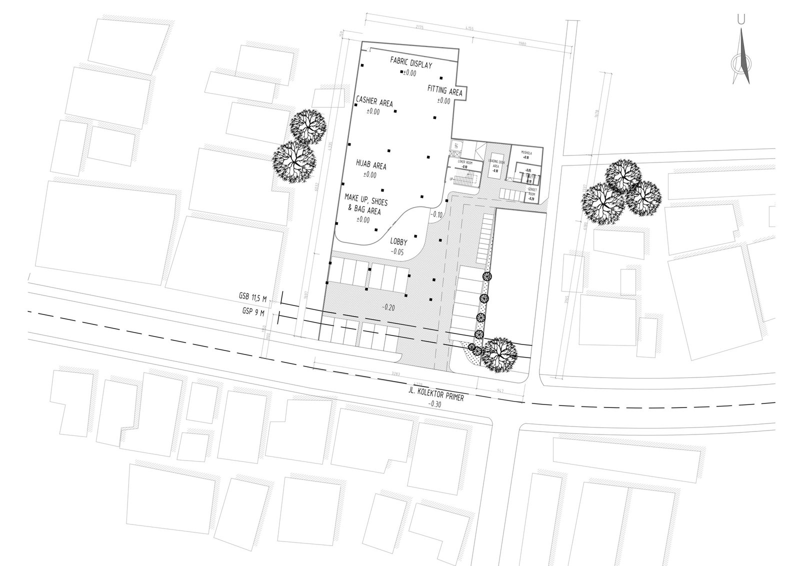 Siteplan disusun meliputi tata letak bangunan, sistem sirkulasi, area parkir, ruang terbuka, jalur utilitas, dan drainase.