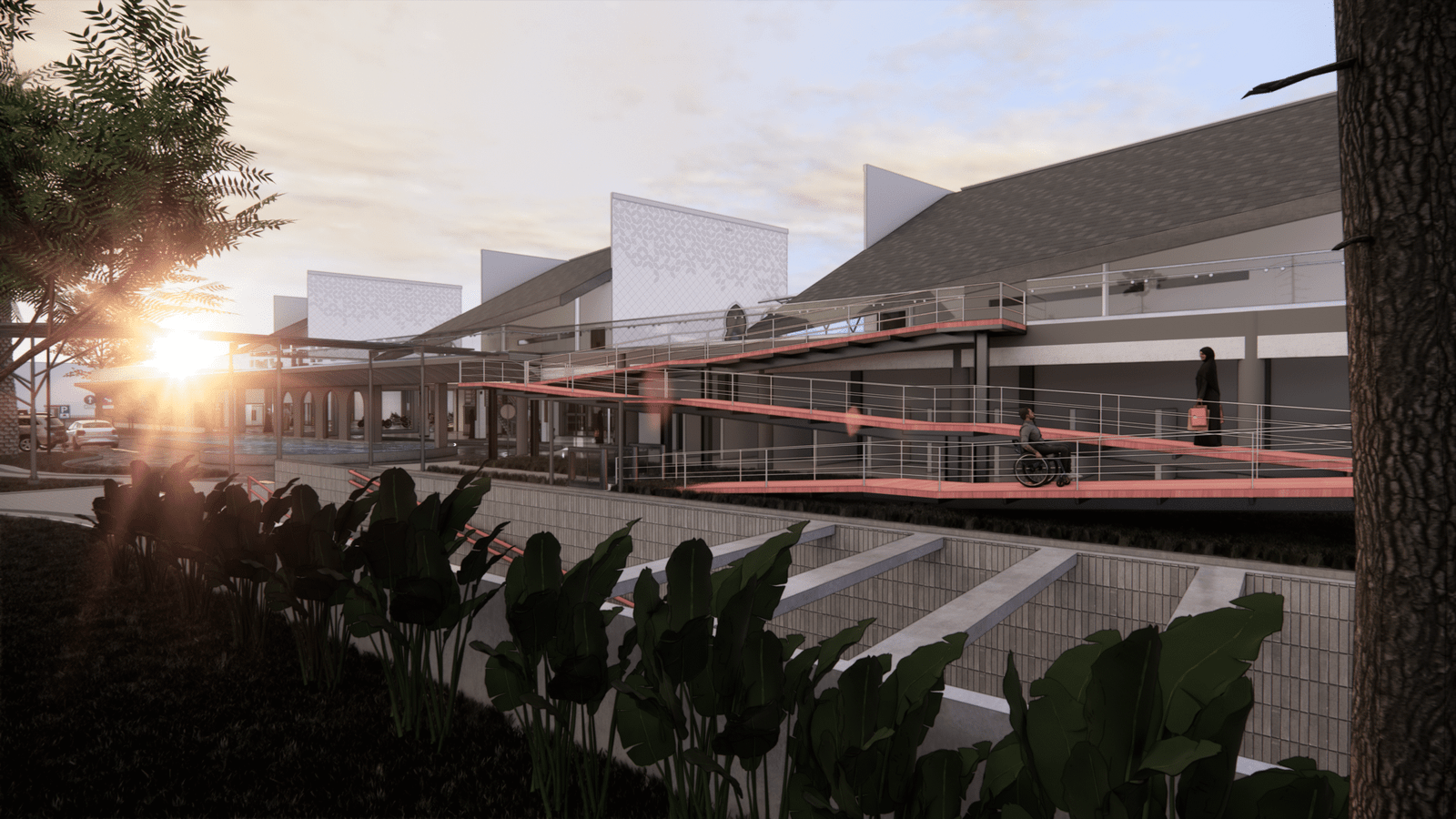 Area pendukung: ruang layanan, area parkir, dan fasilitas umum